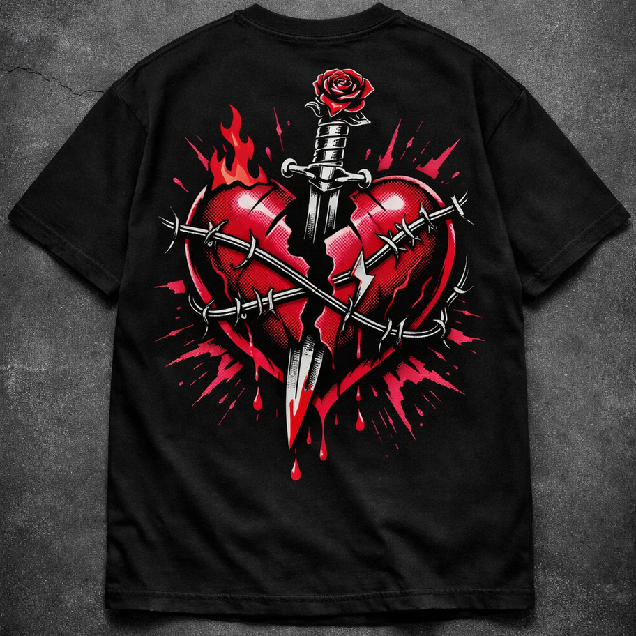This Valentine’s Day, wear love exactly as it is — intense, dangerous, and unforgettable. The Love Cuts Deep Ultra Cotton Tee features a dramatic broken-heart graphic pierced by a blade, wrapped in barbed wire, and crowned with a rose — a symbol of passion that survives pain.